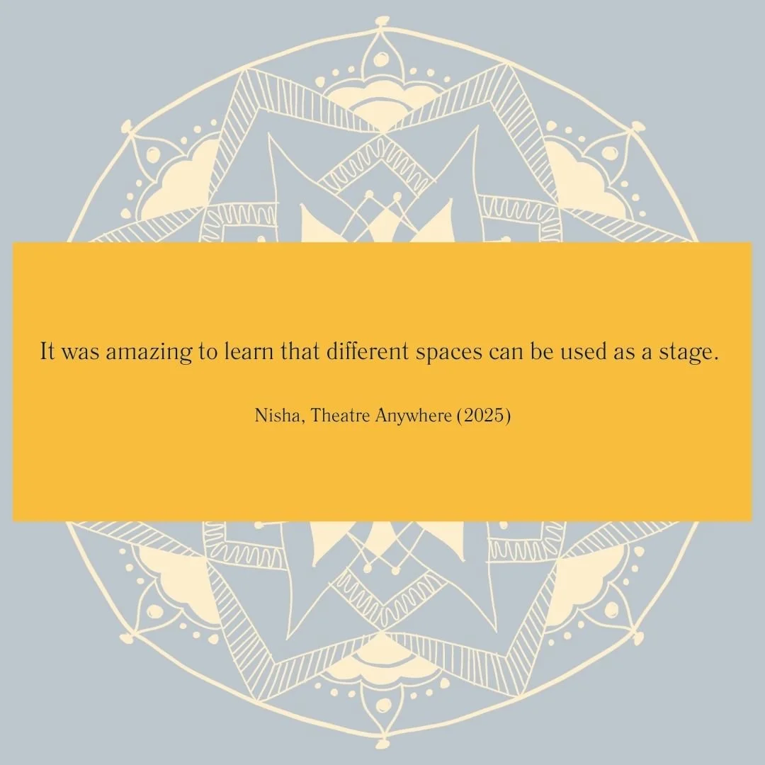 In addition to the sessions above, Nandita is always open to receiving invitations to collaborate.Theatre Anywhere can be adapted for virtual or in-person sessions, literally anywhere!